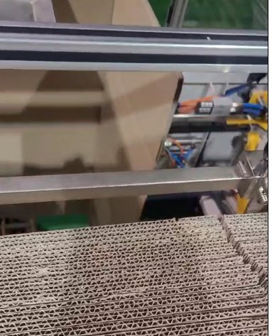 1、取箱時(shí)紙箱沒有打開。如圖所示,這個(gè)客戶的情況是在取箱的過程中,紙箱就沒有打開,還是一個(gè)整體的狀態(tài)被吸取,所以在折箱時(shí)就會(huì)報(bào)警并且掉箱。這個(gè)問題的出現(xiàn)主要是因?yàn)橛脩粼谡{(diào)整開箱機(jī)時(shí),沒有將撥針放到紙箱的縫隙處,導(dǎo)致紙箱在取箱過程中沒有被撥開。