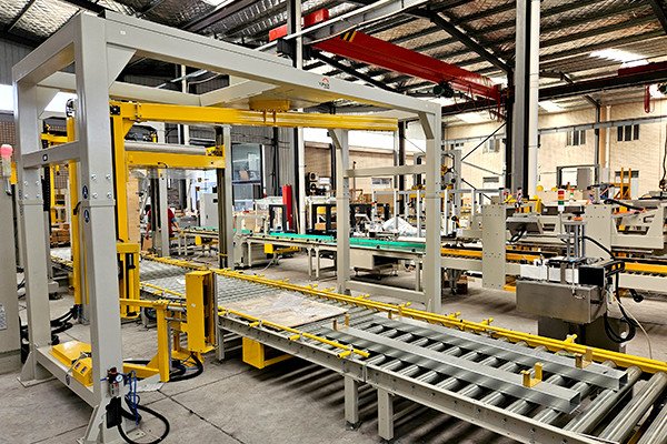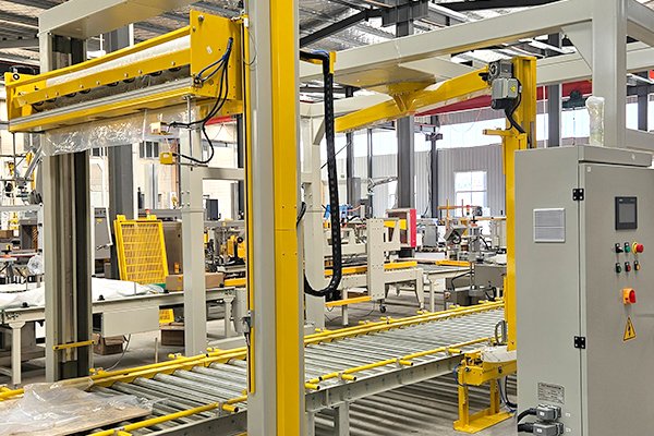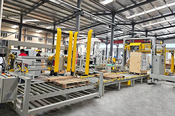 電動(dòng)工具托盤碼垛通過式覆頂膜纏繞捆扎包裝線,是由自適應(yīng)型供棧機(jī)、機(jī)器人碼垛機(jī)、棧板穿劍捆扎機(jī)、通過式覆頂膜機(jī)以及搖臂式纏繞包裝機(jī)組合而成。自適應(yīng)型供棧機(jī)可根據(jù)不同托盤尺寸,自動(dòng)調(diào)整機(jī)器并分配托盤,節(jié)省了人工換產(chǎn)的時(shí)間。