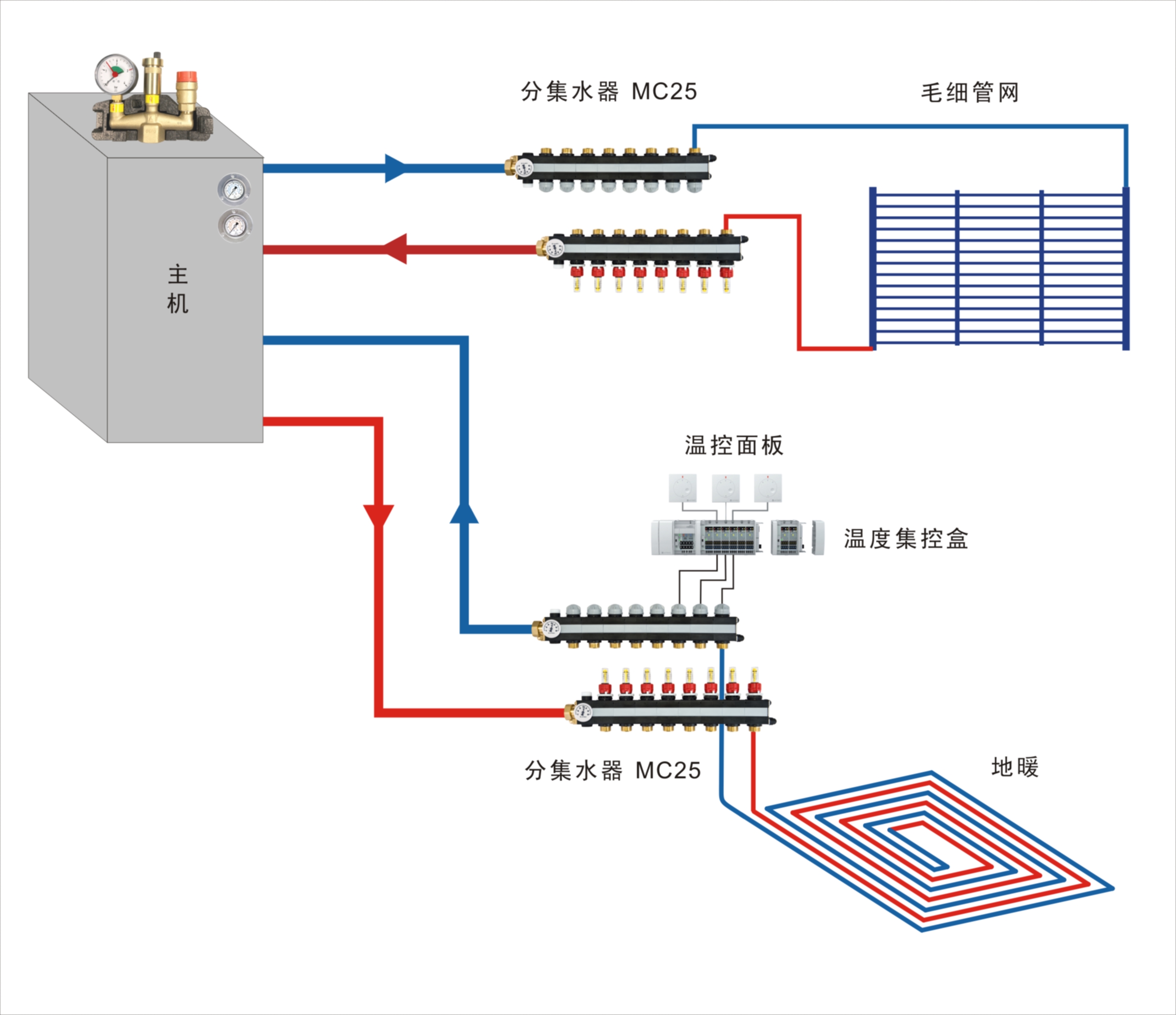 - 回水支管帶手動(dòng)控制閥,也可配自動(dòng)控制的電熱執(zhí)行器