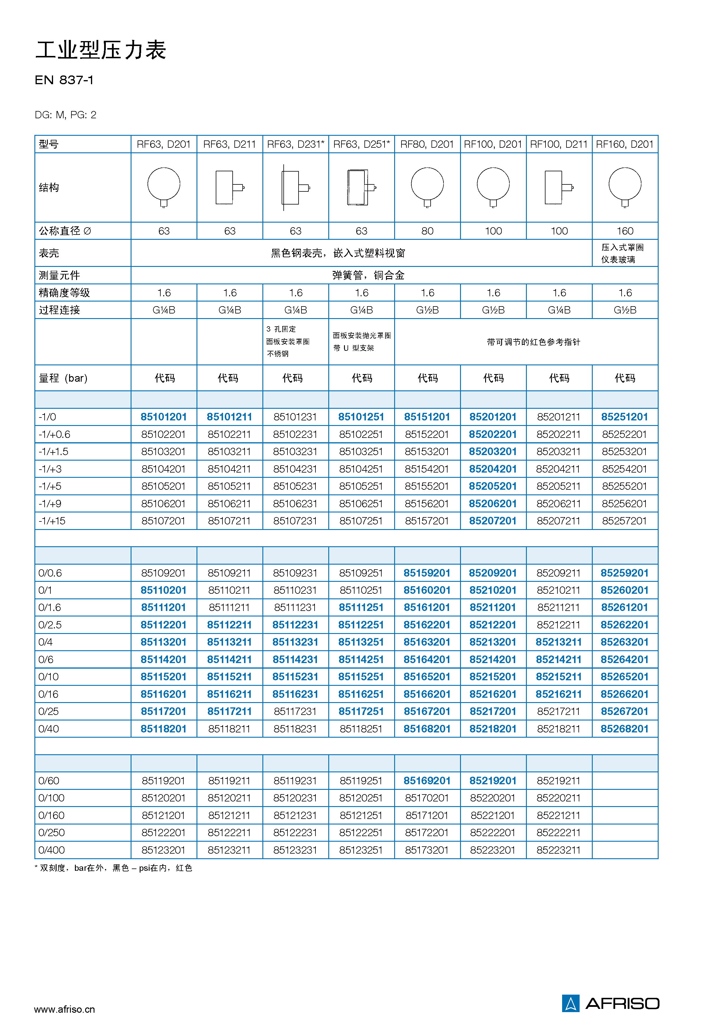 -0.1/0 到 -0.1/+1.5 MPa 0/0.06 到 0/4 MPa |
