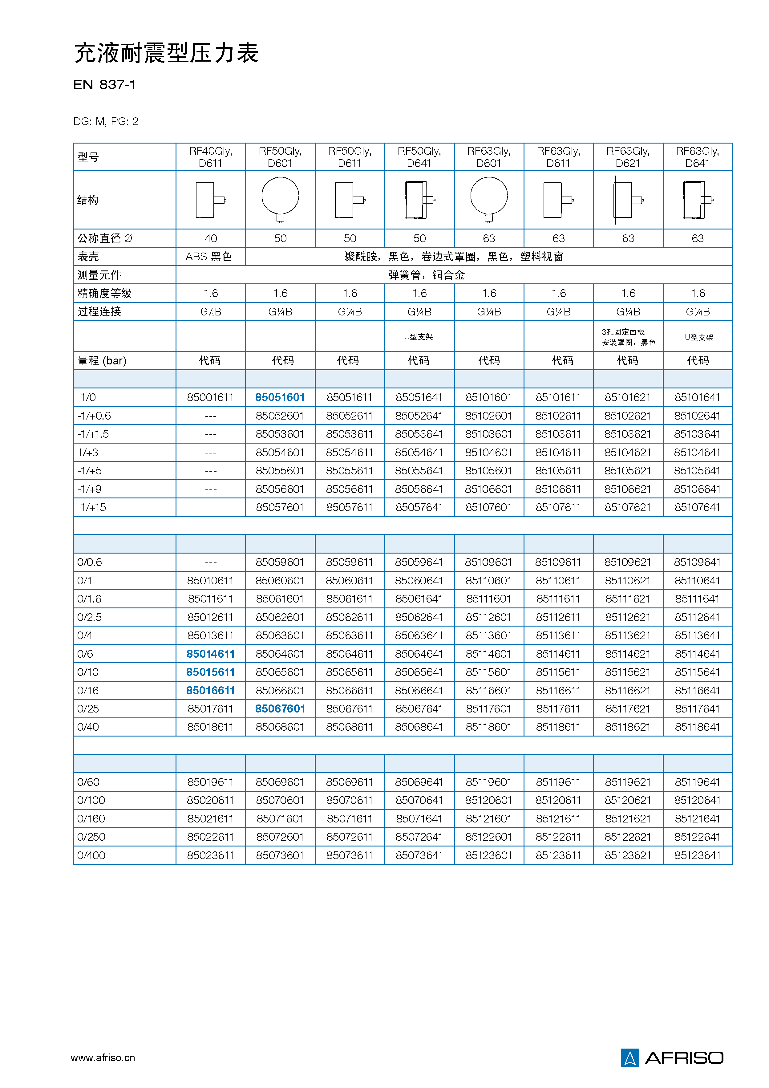 量程 (EN 837–1/5) |