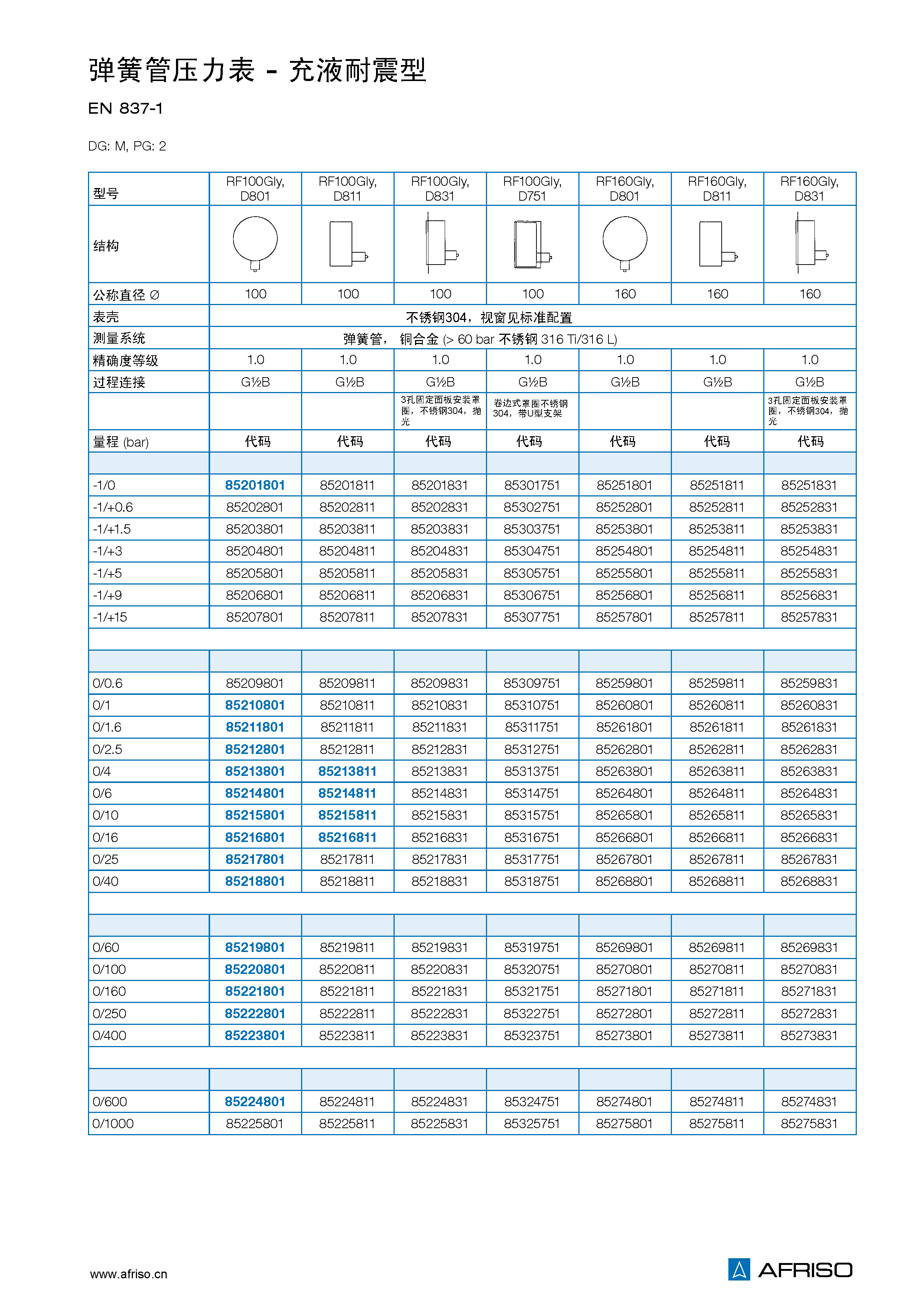 -0.1/0 MPa到-0.1/+1.5 MPa 0/0.06到0/100 MPa |