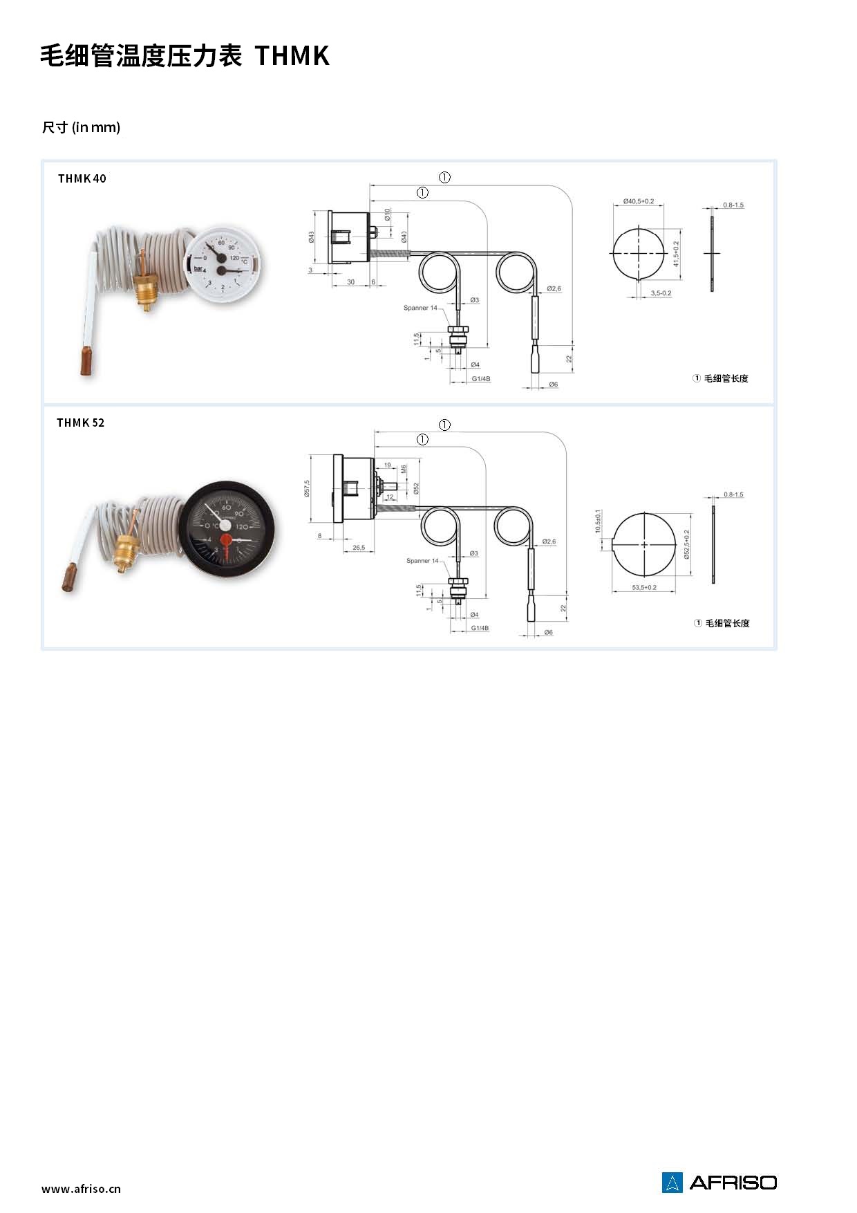 銅毛細管 壓力:G1/4B 銅接頭 溫包:φ6x30mm 銅 |