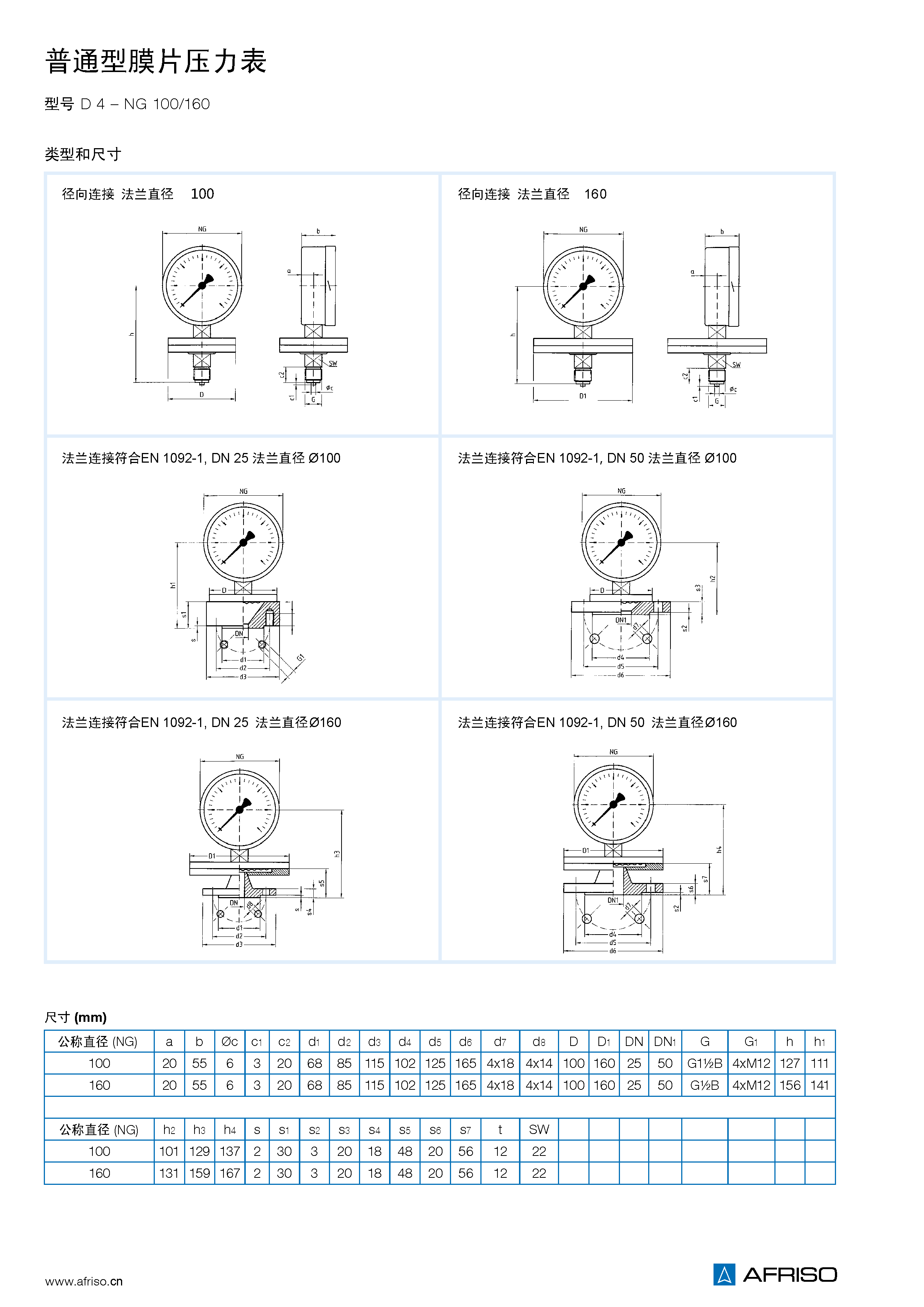 隔膜 法蘭直徑?100: 耐熱隔膜 |