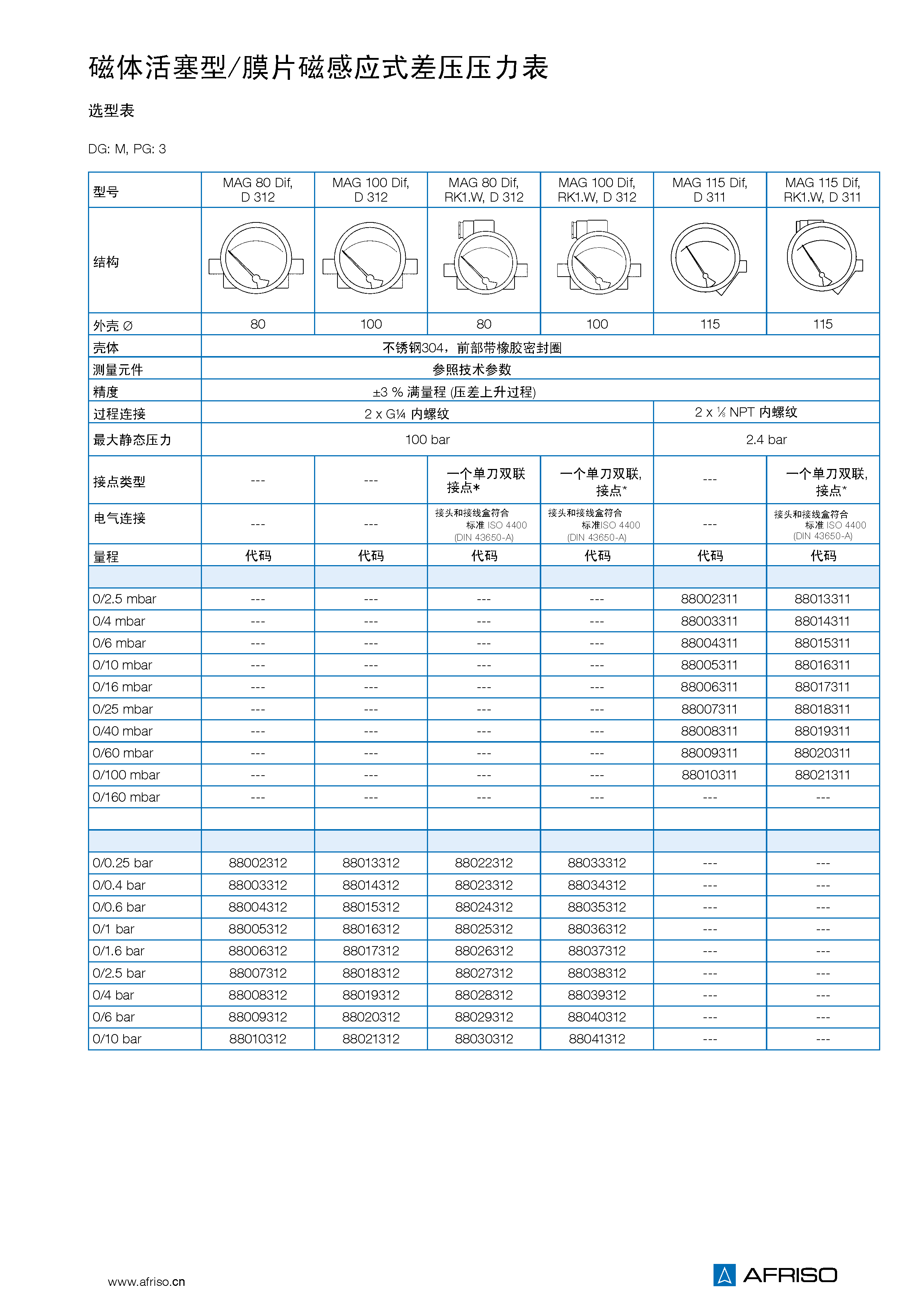 量程( EN 837-3/5 ) |