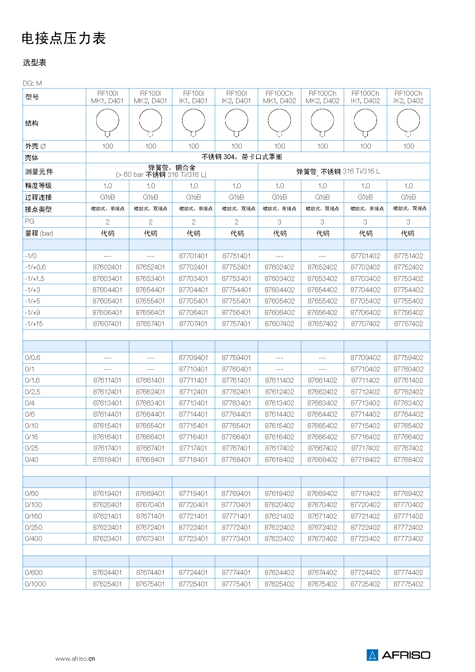 -0.1/0 MPa到-0.1/+1.5 MPa 0/0.1 MPa到 0/100 MPa |