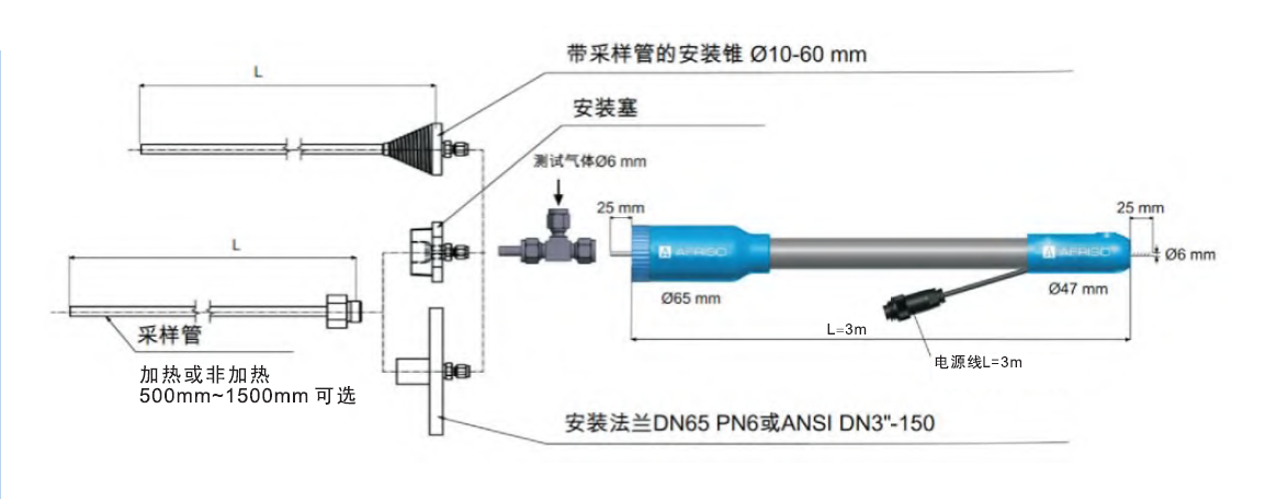 TMA65系統(tǒng)預(yù)留伴熱管線接口,可隨時選裝電加熱管線,以實(shí)現(xiàn)高濕低硫的精準(zhǔn)采樣。集成煙氣過濾器的加熱管線可以作為一個整合的部件,同時也可作為便攜式探頭使用。 |