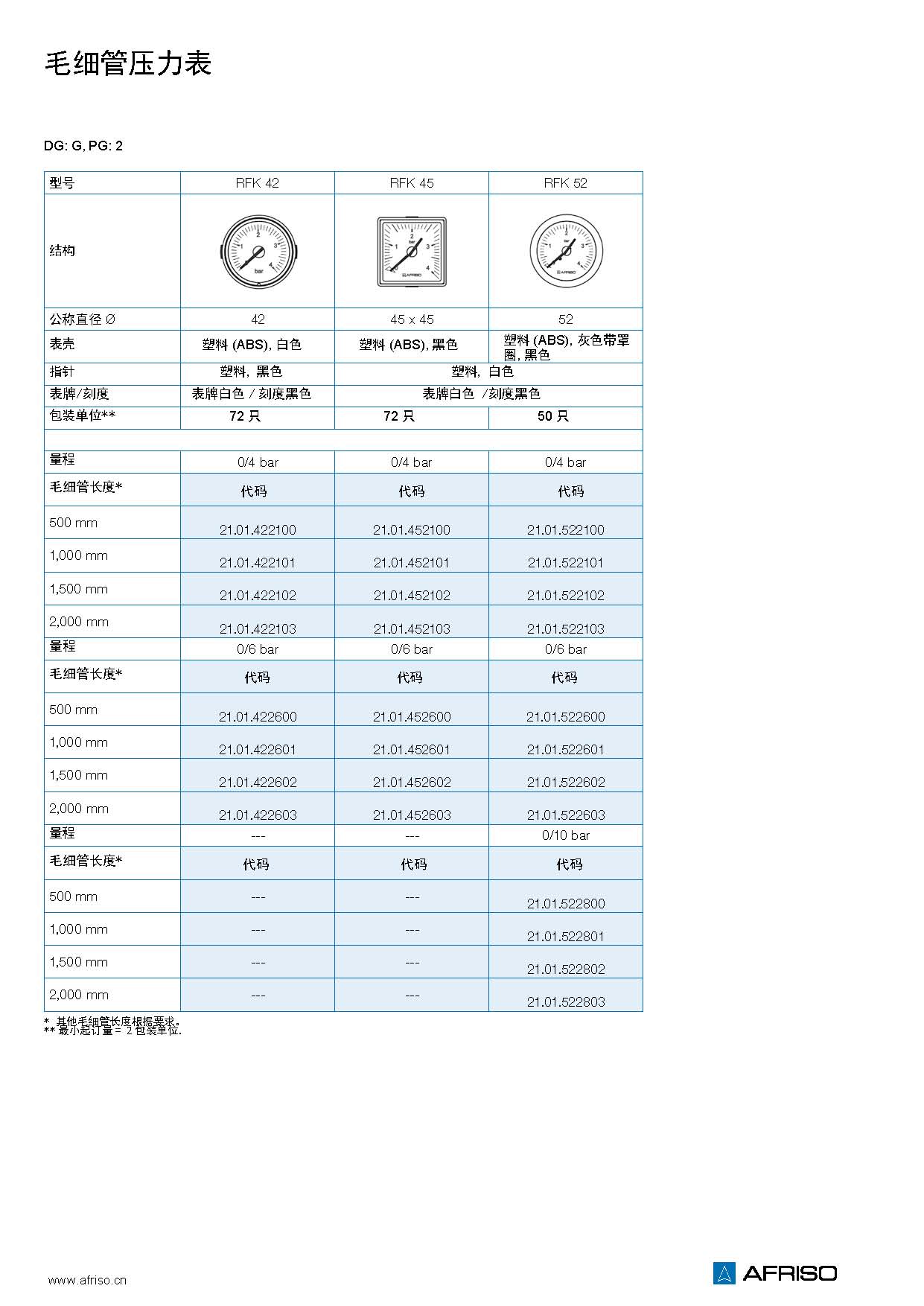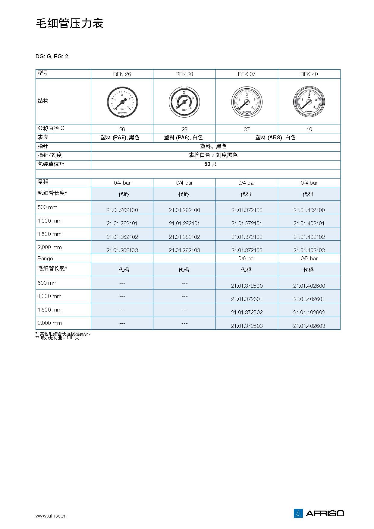量程(EN 837-1 / 5) |