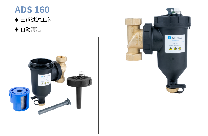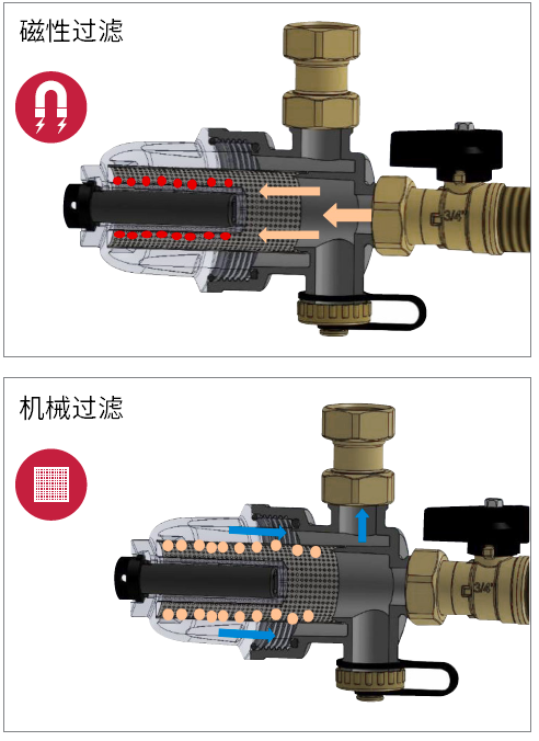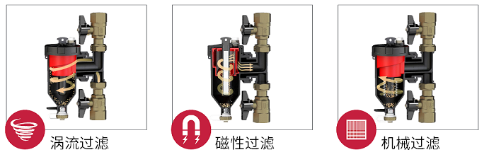 ADS 160 磁性過(guò)濾器除壁掛爐系統(tǒng)外也適用于熱泵系統(tǒng),它整合了三重過(guò)濾功能:磁性過(guò)濾、機(jī)械過(guò)濾和渦流過(guò)濾,其基本原理,是