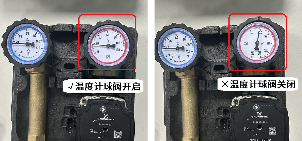① 溫度計球閥應(yīng)保持開啟