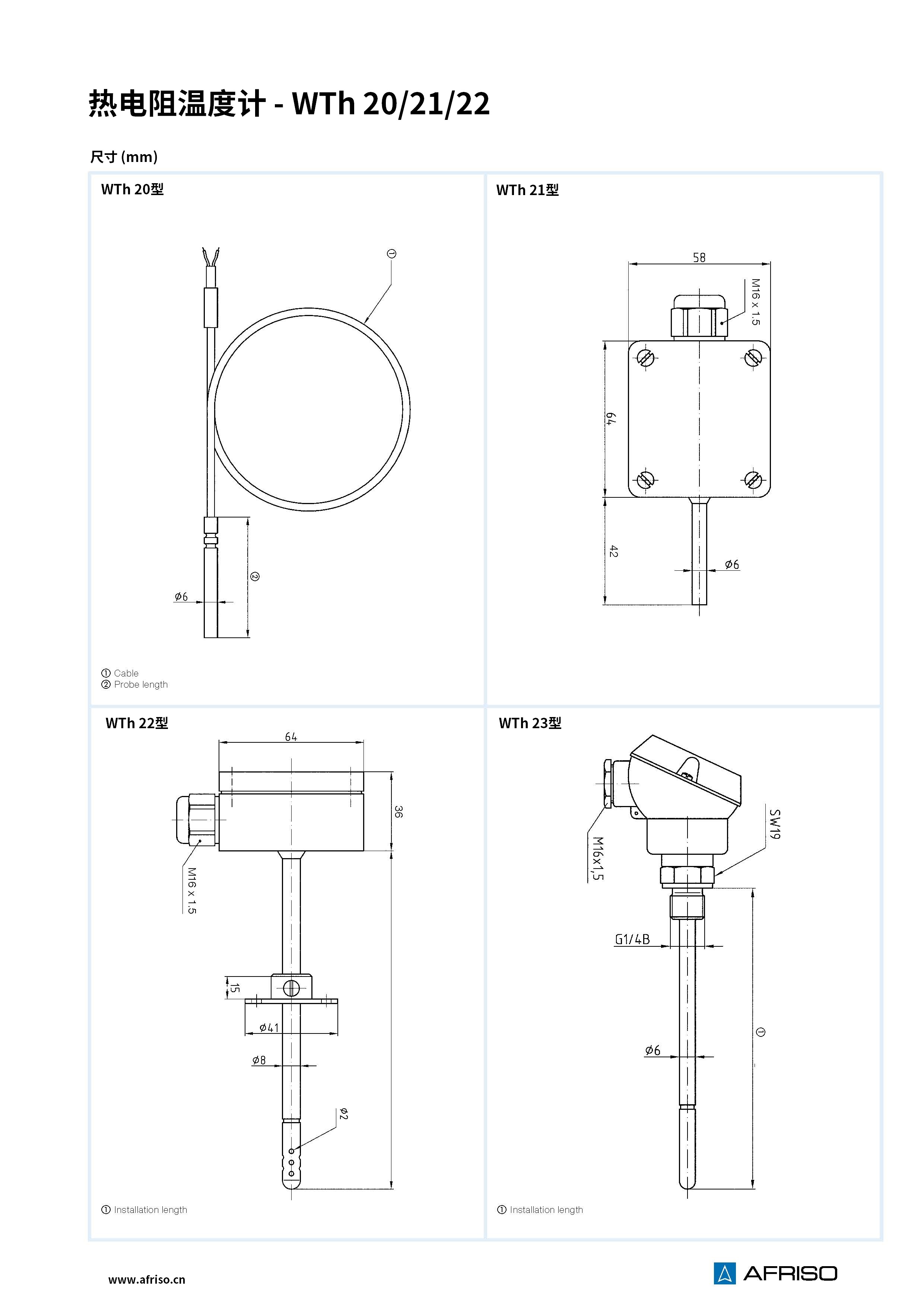 非封閉式探桿 傳感器為A級(jí) 傳感器PtT1000 / Ni 1000 帶變送器 |