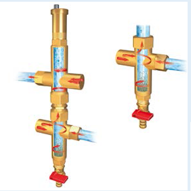 大多數(shù)的供熱系統(tǒng)使用介質(zhì)來傳熱,介質(zhì)中含有多種雜質(zhì)如石灰,鈣,鎂,氧化物,碳酸鹽以及較大的顆粒,如焊接殘?jiān)?,金屬屑和污垢,這些雜質(zhì)可能會導(dǎo)致系統(tǒng)出現(xiàn)故障。排氣排污裝置安裝在系統(tǒng)的回路中,從介質(zhì)中去除這些顆粒,雜質(zhì)顆粒沉淀在排污裝置的收集室中,打開排污裝置,通過排掉少量介質(zhì)即可將雜質(zhì)沖洗出來。潔凈的介質(zhì)在系統(tǒng)中具有更好的熱傳導(dǎo),它們提供更快的加熱,從而有助于減少燃料消耗和排放,減少系統(tǒng)故障,使系統(tǒng)更好運(yùn)?。排氣排污裝置解決系統(tǒng)中因有氣泡引起的問題,排氣閥可以自動排出氣體。 |