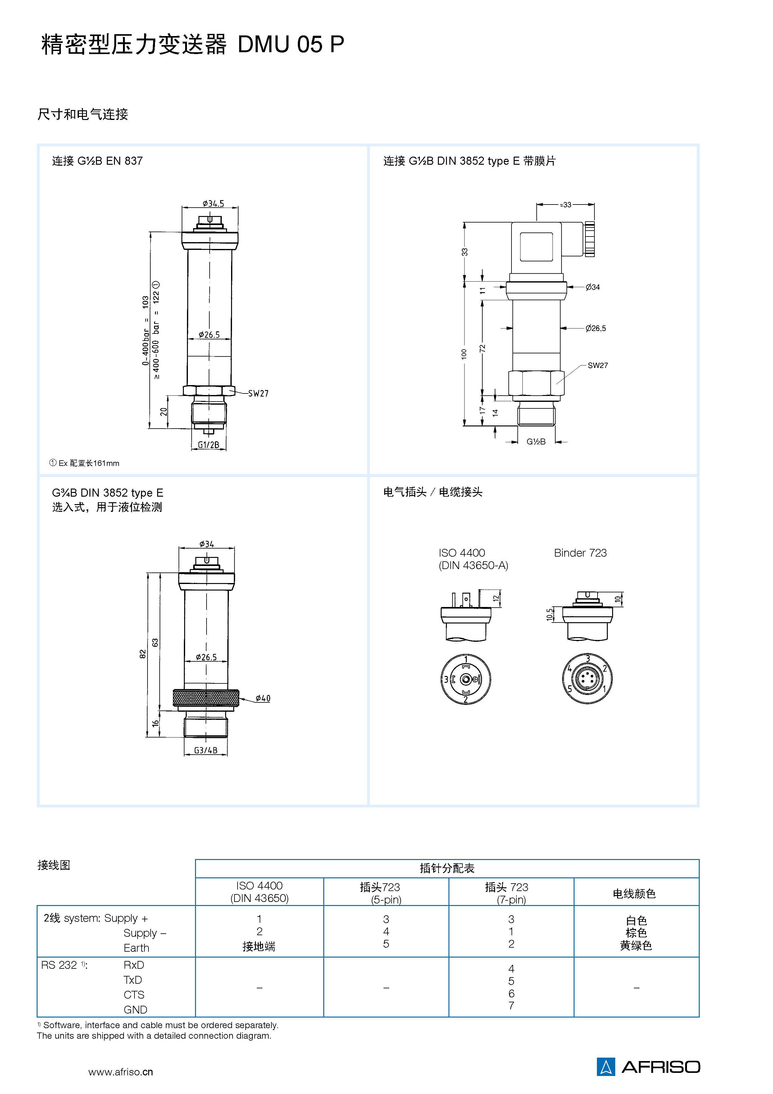 壓力變送器將物理壓力轉(zhuǎn)換成與壓力成正比的電信號(hào)。DMU 05 的測量單元是充油的壓電硅。DMU 05變送器配備了數(shù)字 放大電路(微處理器和16位A/D轉(zhuǎn)換)。 DMU 05 P 可補(bǔ)償傳感器偏差(非線性,溫度偏差),實(shí)現(xiàn)精確的檢測功能。 DMU 05也可選配RS 485 Modbus RTU,用以設(shè)定偏差,量程,阻尼系數(shù)。 |