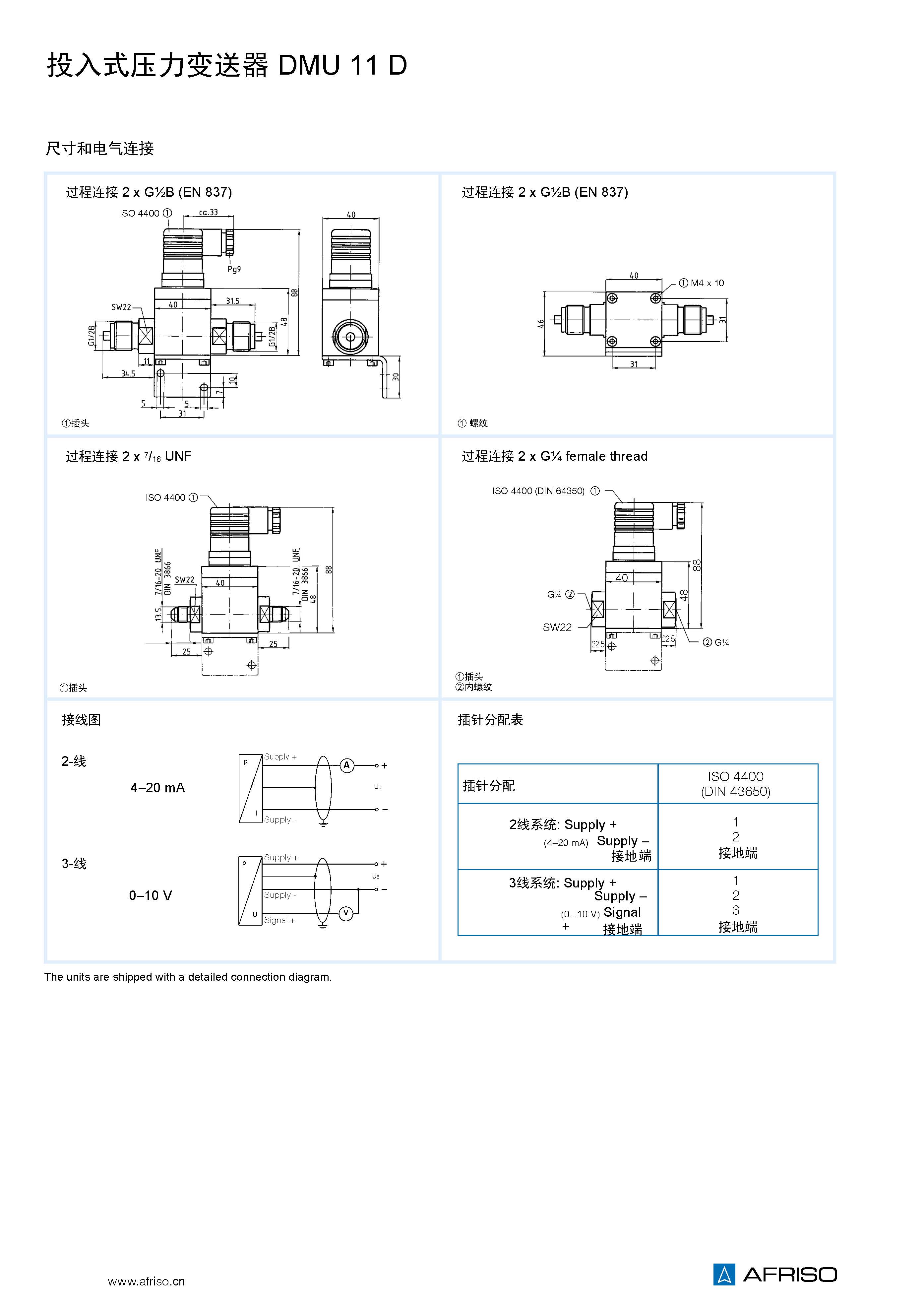 插頭和接線盒符合標(biāo)準(zhǔn)ISO 4400 (DIN 43650-A)IP65 |