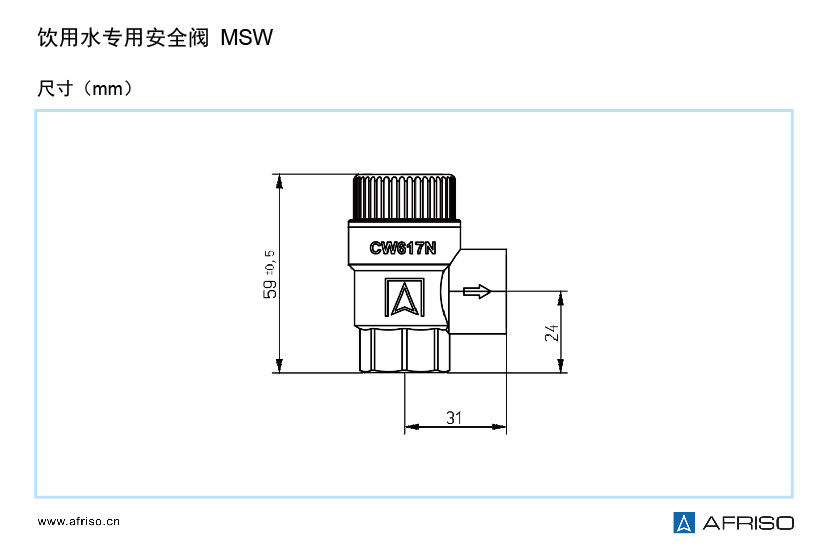 閥體: 銅CW617N 本色或鍍鎳 閥帽: PA6,藍(lán)色 密封件: 飲用水專(zhuān)用型MSW:EPDM 彈簧: 彈簧鋼絲EN10270-1DH(D) |