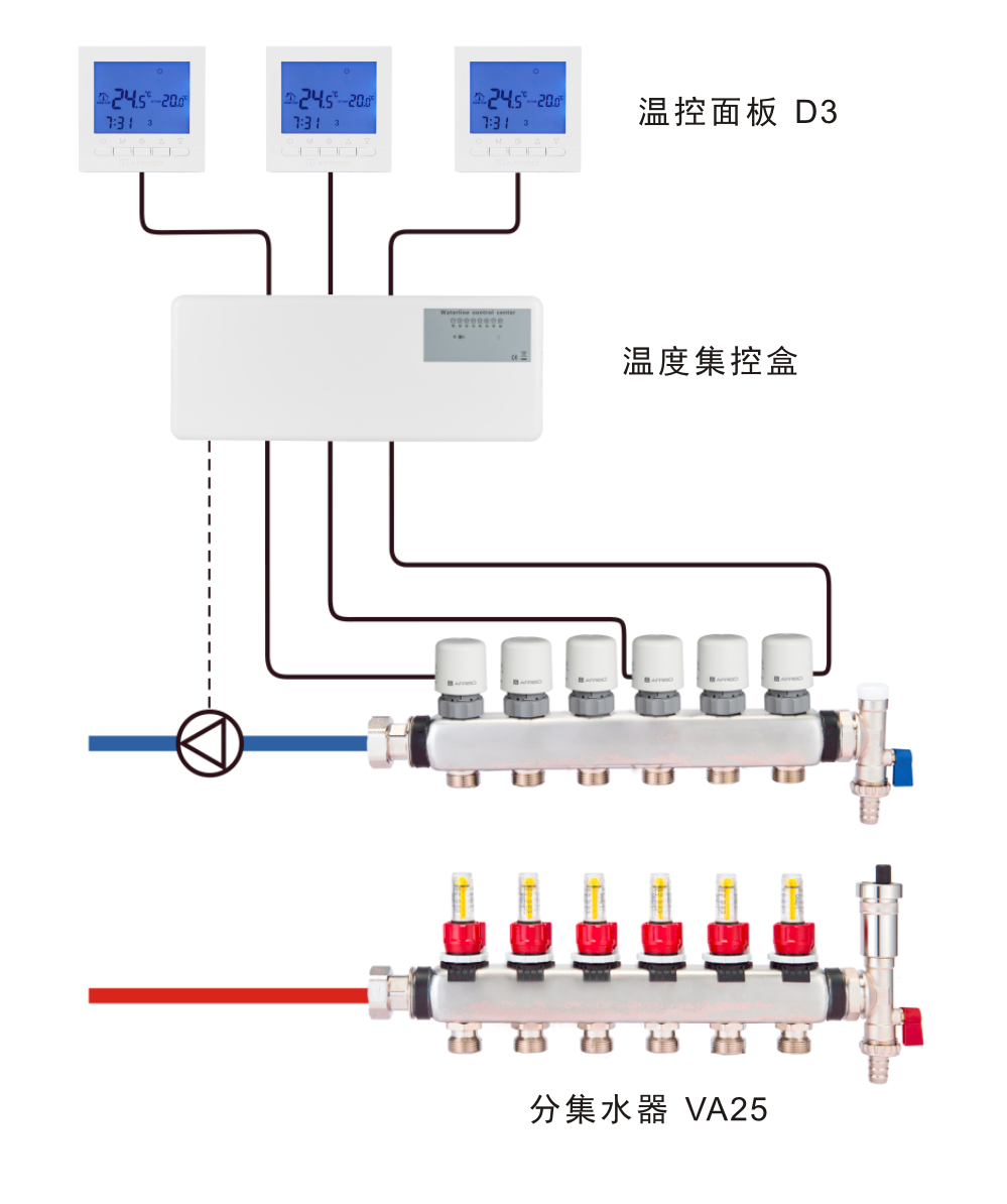 根據(jù)用戶設(shè)定溫度需求,控制熱源、循環(huán)泵或電熱執(zhí)?器的開啟與關(guān)閉,用于達(dá)到舒適控溫的目的, 減少能源耗費(fèi)。 |