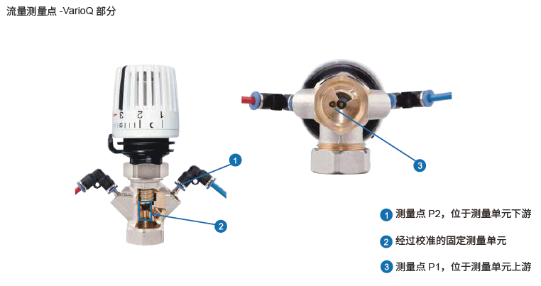 VarioQ 可直接測量/ 調(diào)節(jié)容積流量(例如:用測量儀器CAPBs 實現(xiàn)水力平衡),適用于小/ 中/ 大水量系統(tǒng)。VarioQ 適合 安裝在雙管供熱系統(tǒng)中,按標準進?設(shè)計,無需更改管道連接即可安裝于現(xiàn)有系統(tǒng)。帶有固定的校準測量組件,用于在閥門處直接測量/ 調(diào)節(jié)容積流量。恒溫閥可以與恒溫控制器323 配合使用,并且也可與電熱執(zhí)?器TSA 配合使用。黑色旋帽可手動關(guān)閉閥門。通過ES-SV 調(diào)節(jié)鑰匙可實現(xiàn)預(yù)調(diào)節(jié)功能。閥桿配有雙O 型密封環(huán)。VarioQ 可通過計算、測量、調(diào)節(jié)這三種功能,實現(xiàn)散熱器系統(tǒng)的優(yōu)化。 CAPBs® 設(shè)置閥門平衡以升/ 小時為單位測量流量,并且可以在閥門處輕松設(shè)置水量而無需轉(zhuǎn)換。系統(tǒng)甚至可以設(shè)置最小流量。 |